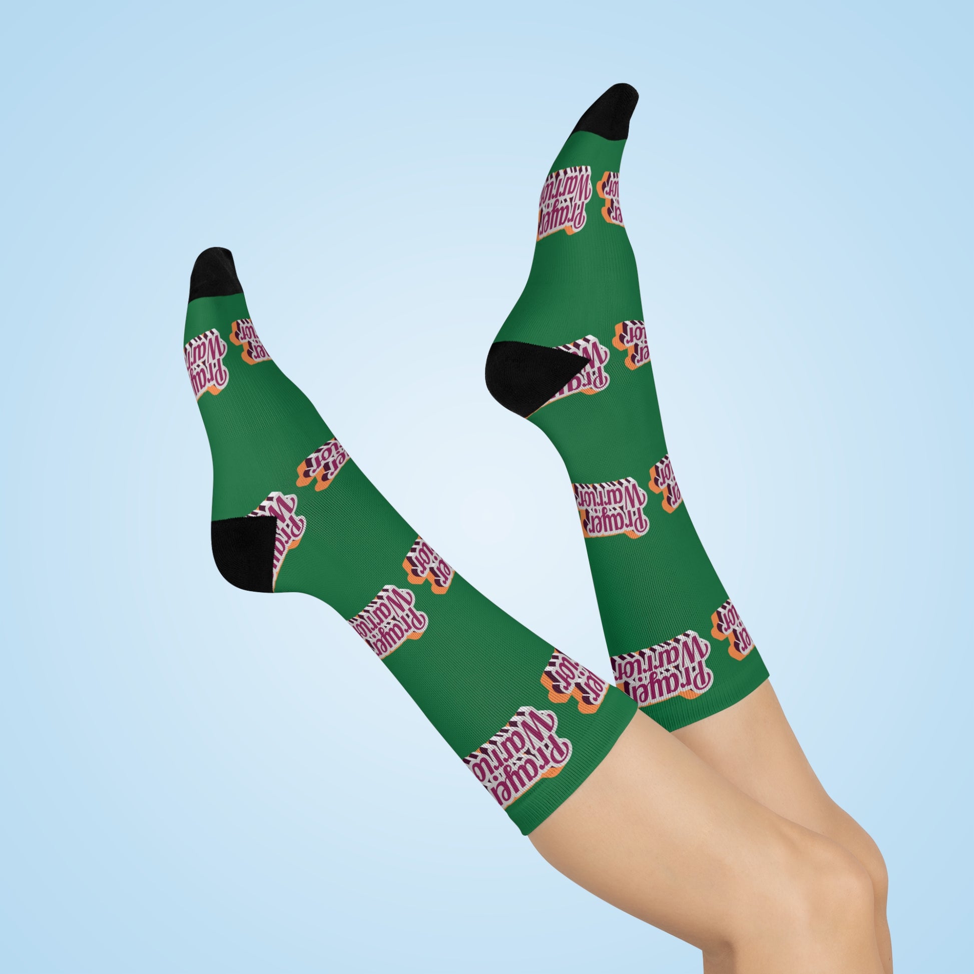 Prayer Warrior Christmas Holiday edition - Green Crew Socks